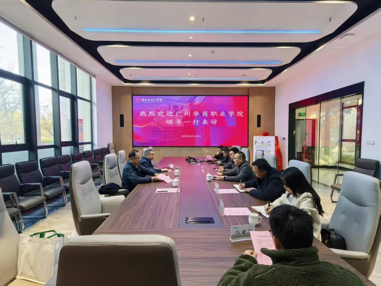 2025年12月25日,广州华商职业学院副校长黄俊斌率队前往台州学院艺术与设计学院进行交流访问。包装技术与设计学院院长陈新、学院办公室主任吴居勇一同参加。此次访问旨在加强两校在艺术设计、包装技术等领域的交流与合作,共同探索高素质技术技能人才培养的新路径。