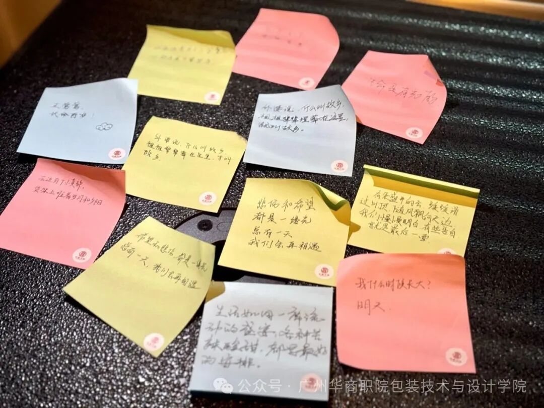 此次观影活动为契合书香文化月主题,在观影结束后,现场特意摆放了便利贴与笔,供同学们写下影片或原著小说中令自己印象深刻的句子,定格心底的触动与感悟。一张张便利贴,让书香与光影的印记,以最真挚的方式得以留存,也让同学们在分享与铭记中,更深切地体悟人间温情、明晰青春方向,努力做心中有光、眼里有爱、行中有善的新时代青年。