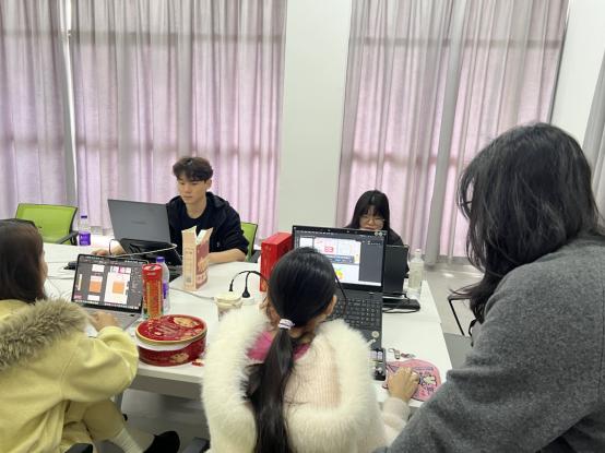 本次赛事规格高、竞争激烈,为全力冲刺,学院高度重视,迅速组建备赛团队,指导老师制定全周期、分阶段备赛方案,历经首轮线下集中培训、春节假期线上研讨、赛前全时段沉浸式集训三个关键阶段,层层推进、精准发力。备赛期间,师生同心协力,深耕赛事标准,针对标志设计、图形图像处理、广告与包装设计、动态视觉呈现等核心技能反复打磨,针对无 PPT 综合展示环节开展多轮模拟演练,不断优化表达逻辑、职业礼仪与团队配合。