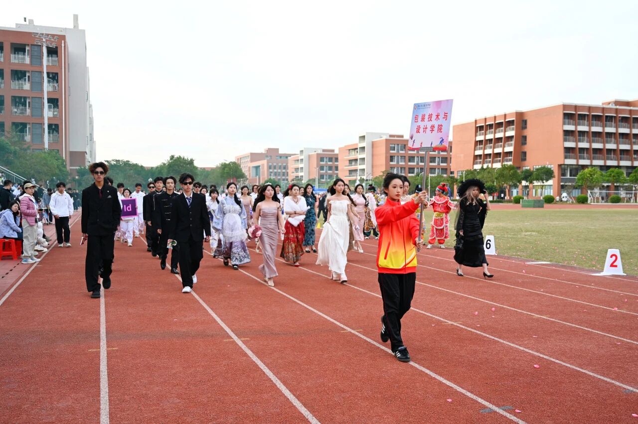 开幕式上,在各具特色的方阵队伍中,包装技术与设计学院方阵格外引人注目。同学们身着特色鲜明的服装,整齐的步伐、昂扬的斗志,展现出属于包装技术与设计学院独特的青春风采与团队凝聚力。