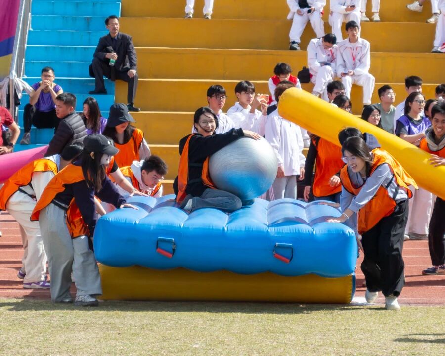 除了紧张激烈的学生赛事,教师趣味运动会同样精彩纷呈。包装技术与设计学院的老师们积极参与“砥砺前行”“移动城堡”“齐心拔河”等项目,褪去讲台的严肃,化身活力满满的运动健将。