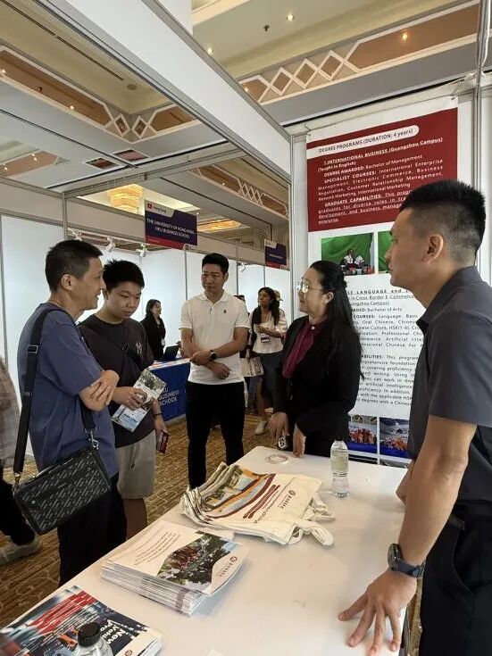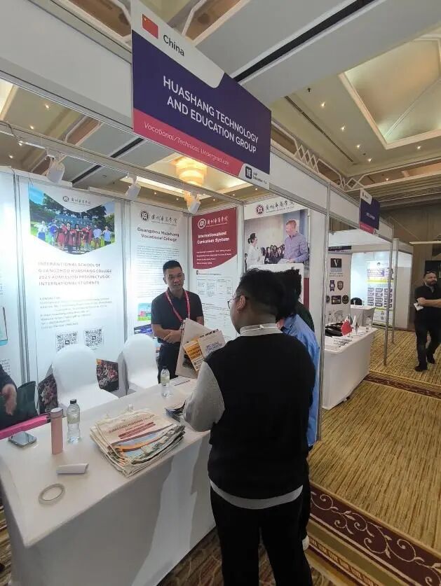 展会期间,广州华商职业学院凭借独特的职教定位与成果,成为现场焦点,吸引大量中东地区学生及家长驻足咨询。江燕围绕“应用型人才培养”核心,系统介绍学校在校企协同育人、实训基地建设、产业需求对接等方面的创新实践,直观展现中国职教“产教融合”的鲜明特色。