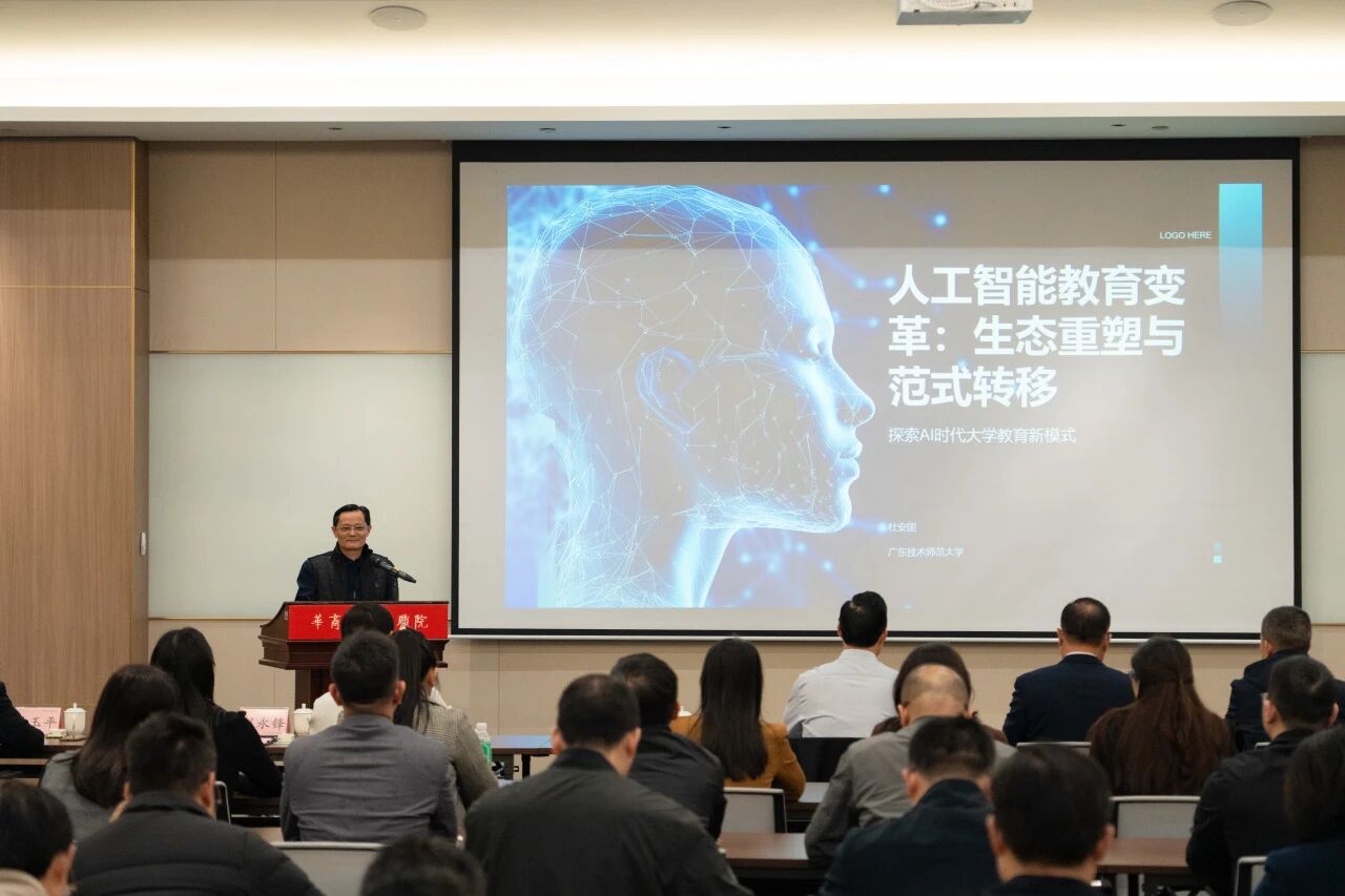 杜安国教授以《人工智能教育变革:生态重塑与范式转移——探索AI时代大学教育新模式》为题,从核心理念重塑、教学模式颠覆、大学组织结构演进、评价与认证体系改革,以及人工智能赋能教育教学实践等多个维度,深入剖析AI时代大学教育的新模式和新挑战。