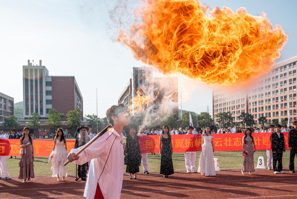 随后进行的体育项目化教学成果展演将开幕式推向高潮。刚柔并济的蔡李佛拳,展现了传统武术的深厚底蕴与力量之美;活力四射的街舞表演,跳出了青春的节奏与自由;蓝染服装秀的优雅风采,诠释了自信与从容;而最后压轴的啦啦操表演,则以整齐划一的动作、变幻丰富的队形和极具感染力的笑容,引爆全场,充分展示了体育教学与美育融合的丰硕成果,赢得了阵阵掌声。