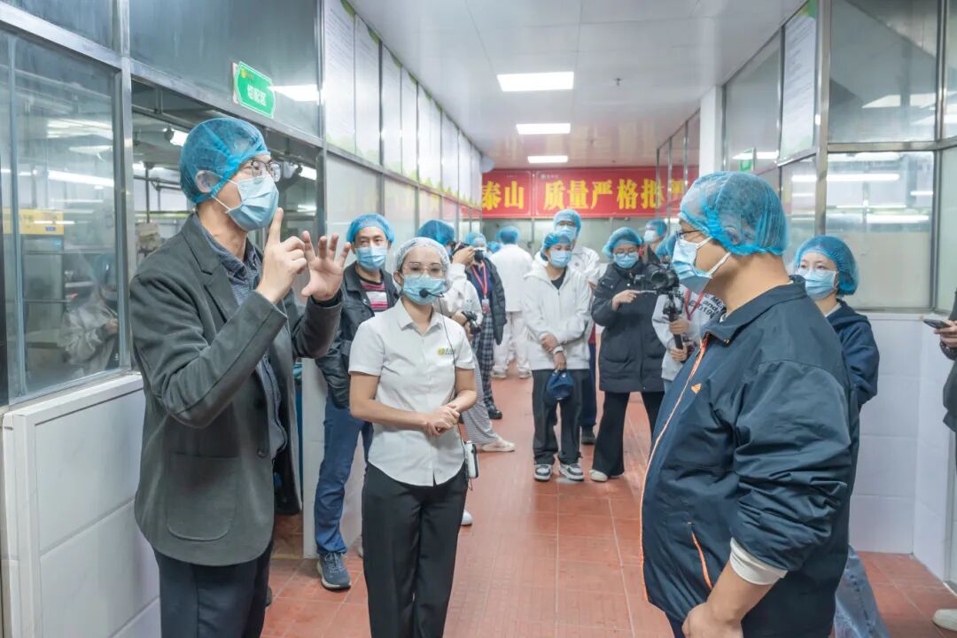 演练结束后,活动进入“明厨亮灶,食安共筑”后厨参观环节。师生代表们在第一饭堂经理庄妃晓的引导与讲解下,穿戴好一次性防护用品,有序走进第一饭堂的后厨操作区域。