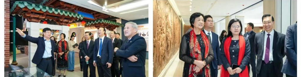 在世界华商博览馆门口,廖榕就董事长特别介绍了自己二十年前以“华商”为名创办学校的缘由。廖榕就董事长认为,“华商”不仅仅是个人、更是一个群体、一个统称。华商会议展览中心正是要突出“世界的华商,华商的世界”这一理念,将华商的精神实质与文化内涵娓娓道来。