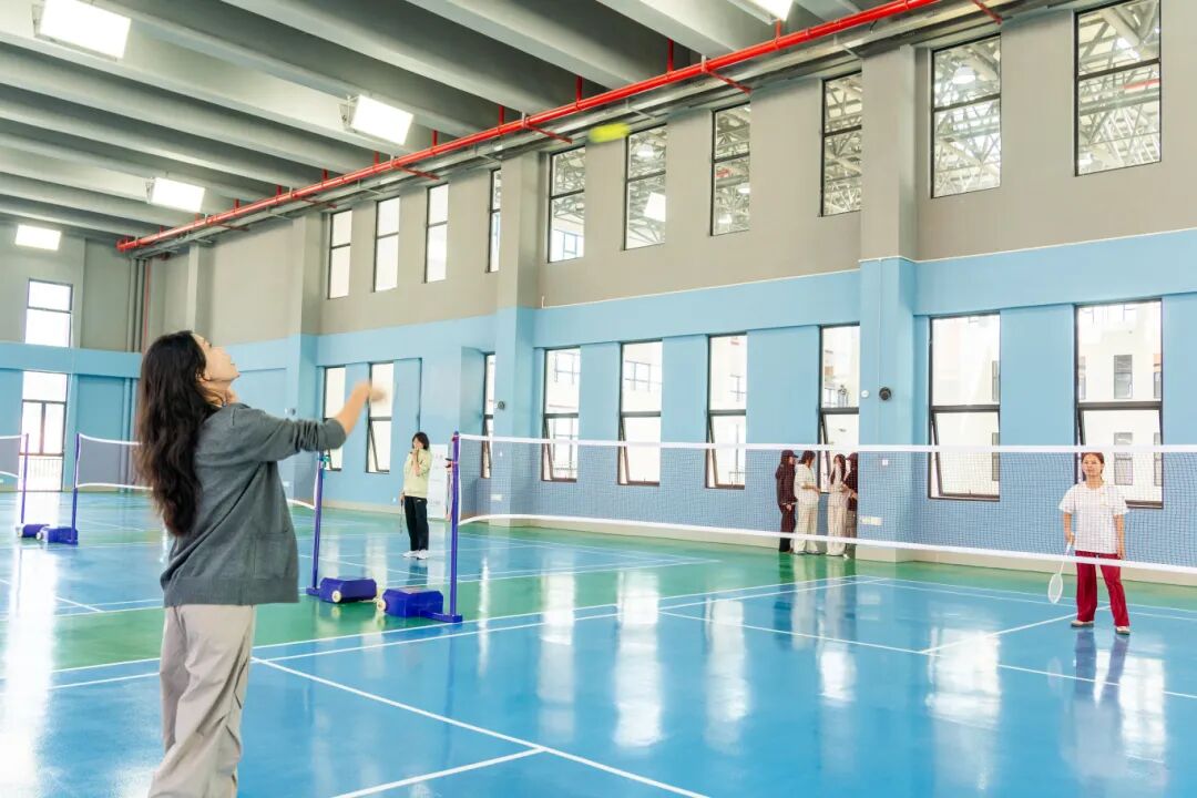 羽毛球馆位于体育馆2楼内,设有7个标准场地,师生可以在安全舒适的环境中尽情挥拍。