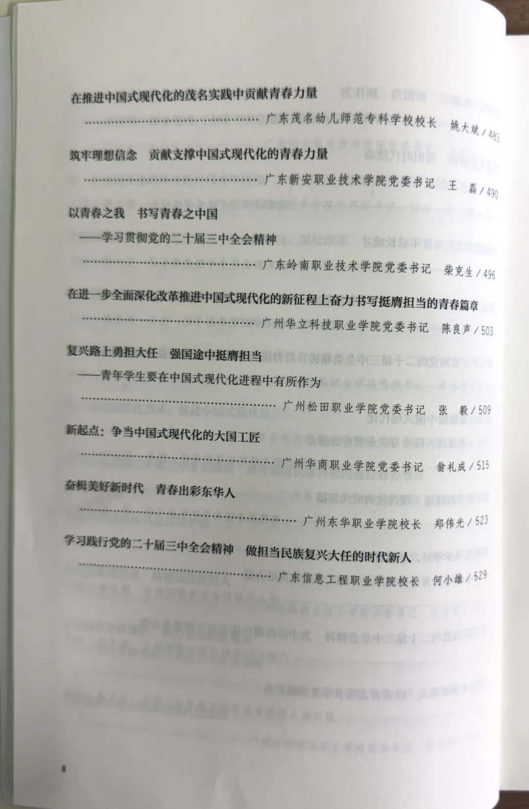 近日,广东省委教育工委、省教育厅组织编印的《广东高校党委书记、校长思政“第一课”精品文集》正式出版。广州华商职业学院党委书记翁礼成教授的思政“第一课”讲稿《新起点:争当中国式现代化的大国工匠》成功入选,充分彰显了学校思政课程建设的扎实基础和育人成效。