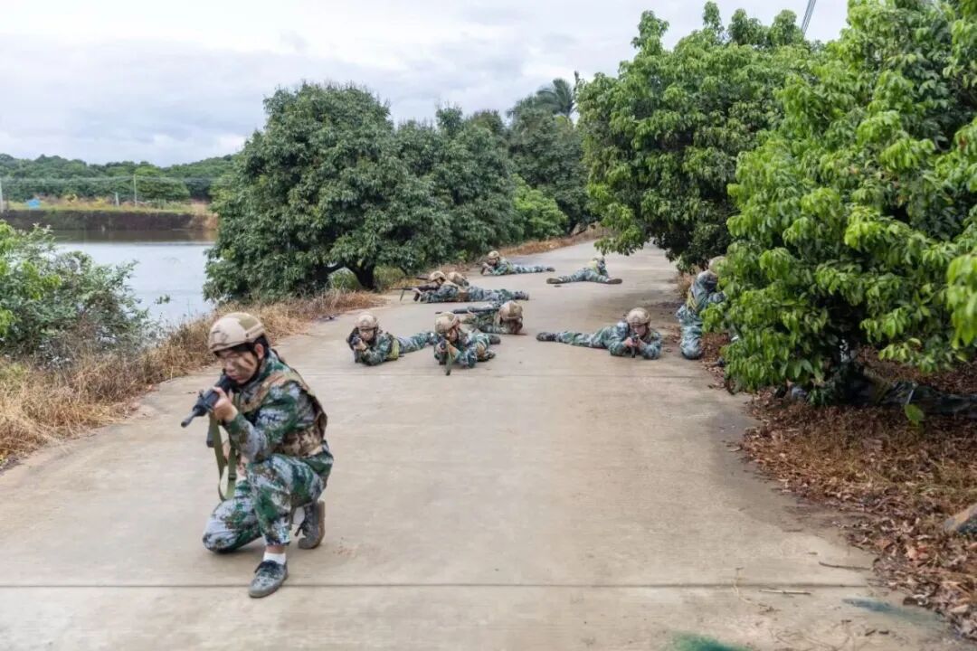 行军途中,尖刀班率先执行侦察任务。在模拟敌情区域,队员隐蔽接近“敌方哨兵”,迅速研判态势,以擒拿技巧一举制服目标。