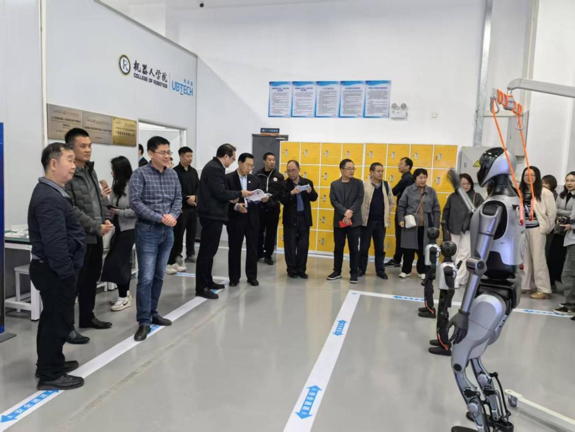 座谈会后,卢坤建校长一行在广科院相关负责人的陪同下,实地走访了计算机工程技术学院与机器人学院。在以“以匠心,致创新”为发展理念的计算机工程技术学院,参观团队先后了解了华为鲲鹏数字产业学院的产教融合模式、“云中广科”统一联接平台的服务效能、“云智广科”的技术创新应用,以及“知行大先生”专有大模型在教学辅助、资源生成等场景的实践案例。其中,广科院“AI + 行动计划”提出的算力联网、数据联通、专业联融、产教联动等“十联行动”,以系统思维推动人工智能与职业教育深度融合,让参观团队深受启发。