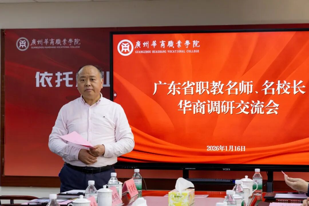 为促进职业教育领域的经验分享与合作,共同推动职业教育高质量发展,2026年1月16日下午,职教“百千万人才工程”专业名师、名校长调研组一行莅临广州华商职业学院广州校区开展交流访问活动。
