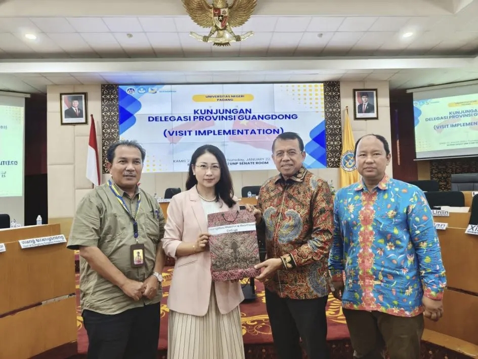 应印度尼西亚人类发展与文化统筹部及西苏门答腊省教育厅邀请,2026年1月19日至23日,广东省教育厅组织华南理工大学、广东轻工职业技术大学、广东水利电力职业技术学院、佛山职业技术学院等11所高校代表共赴印尼,共同见证“岭南工匠学院”合作谅解备忘录签署,并参加2026年广东-巴东“留学广东”考试选拔及教育展,旨在进一步推动“岭南工匠学院”建设,打造“留学广东”品牌。
