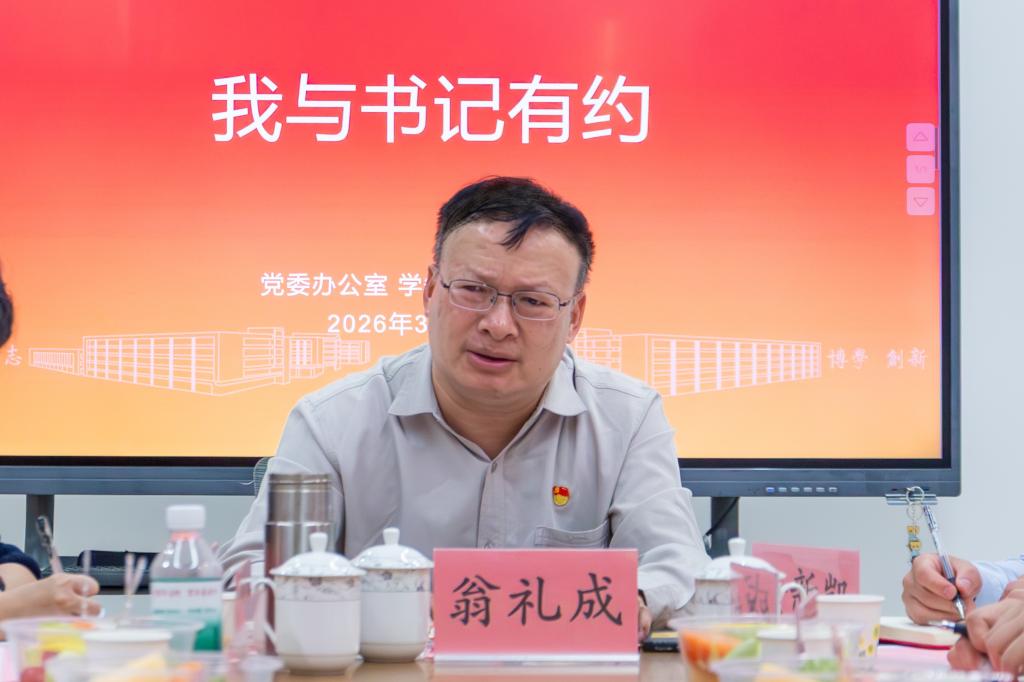 为进一步加强预备党员培养教育工作,坚定青年学子理想信念,搭建师生沟通交流的坚实桥梁,3月25日下午,广州华商职业学院于广汉书院红色基因传承室开展了“我与书记有约”预备党员面对面谈心谈话活动。党委书记翁礼成、中层干部代表及师生代表共同参加此次活动,活动由学务部部长金新凯主持。