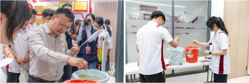 活动正式开始之前,翁礼成书记、教师代表与现场学生携手制作漆扇,在沉浸式体验的过程中有效拉近了彼此的距离。随后,18名预备党员代表依次发言,结合自身成长经历深入分享入党初心,深刻畅谈对学生党员身份的理解,并围绕党建活动开展、实践平台建设、AI+专业教学、校园配套设施完善等方面提出了具有建设性的意见和建议,字里行间满含对学校高质量发展的真切期盼。