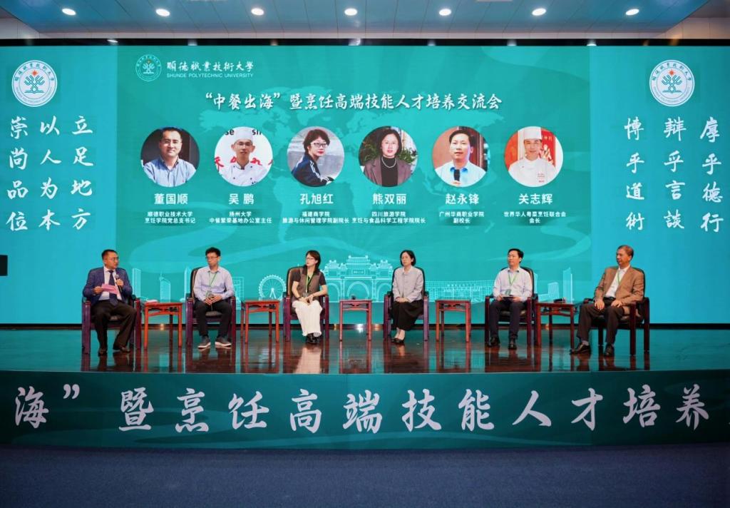 春和景明,以食为媒;匠艺传情,共赴新程。3月28日,“中餐出海”暨烹饪高端技能人才培养交流会在顺德职业技术大学举行。本次交流会旨在落实全省高质量发展大会部署,汇聚政行校企各方力量,共绘中餐出海发展蓝图、共商烹饪高端技能人才培养之策,以产城教融合促进中餐文化全球传播,助力文旅产业提质升级,赋能人文经济高质量发展。广州华商职业学院作为全国五家“海外惠侨工程-中餐繁荣基地”之一受邀参会,华商科教集团董事长廖榕就博士、酒店餐务学院首席院长刘惠平,广州华商职业学院副校长赵永锋、酒店管理与厨艺学院院长邓应华、广州太阳城大酒店总经理李向阳、董事会秘书谢嘉希等一同出席会议。