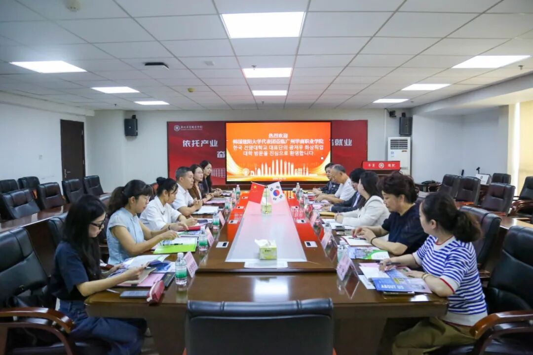 4月10日,韩国建阳大学副校长李美香一行莅临广州华商职业学院,双方就深化校际合作、共育国际化专业人才达成共识,并正式签署校际合作协议。此次合作精准聚焦眼视光技术专业领域,旨在通过引入国际优质教育资源,推动专业内涵建设与人才培养模式的创新升级。学校副校长孙虎,国际教育学院院长钱芳,医学技术学院院长屠美、副院长洪文艳出席本次活动。