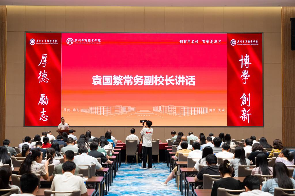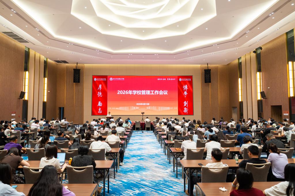 为全面梳理学校管理工作成效,精准部署下一阶段重点任务,进一步统一思想、凝聚共识、压实责任,持续提升学校治理体系和治理能力现代化水平,4月15日,广州华商职业学院在华商会议展览中心华商玉堂召开2026年学校管理工作会议。学校领导班子成员、各职能部门负责人、各二级学院党政负责人、全体中层管理人员及相关工作骨干参加会议,会议由学校校长卢坤建主持。