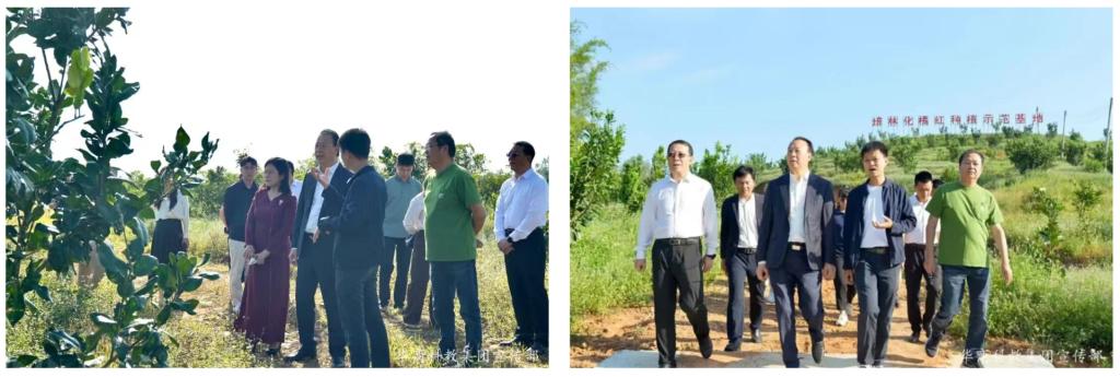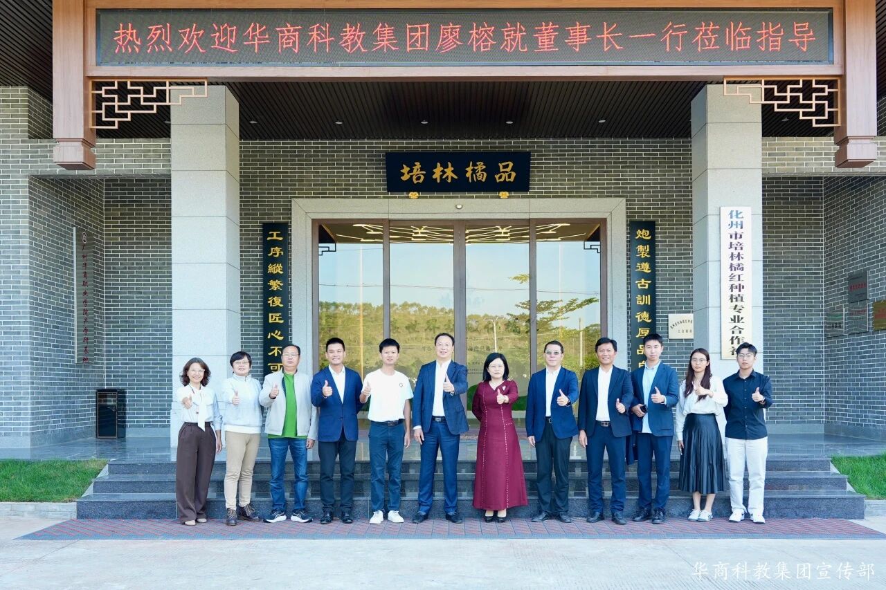 2025年10月24日,华商科教集团董事长廖榕就,华商科教集团党建工作领导小组书记陈玉欢,华商科教集团副总裁郭志明,广州华商学院党委副书记、纪委书记、副校长吕峻闽,广州华商职业学院常务副校长袁国繁等一行到化州市培林橘红种植专业合作社调研。全国劳动模范、全国人大代表、华商杰出校友廖志略、化州市培林橘红种植专业合作社社长廖志略,副社长林艳花,销售总监兼社长助理劳金玲以及生产部主管兼社长助理谢久耀等热情接待。