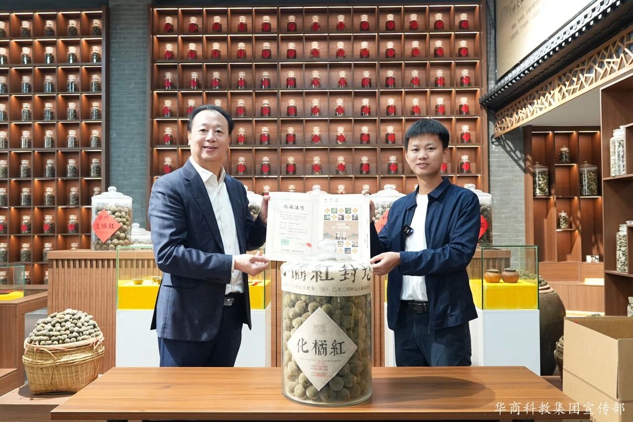 在化州市培林化橘红种植专业合作社,华商科教集团一行参观了展厅、培林化橘红炮制技艺与标准仓储区、合作社的直播孵化点与产品展示厅以及产品销售区等多个标杆性场所,并听取相关介绍,沉浸式体验化橘红从种植到炮制、从存储到销售的全链条过程。