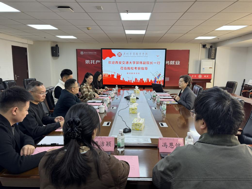 2026年1月7日,西安交通大学继续教育学院副院长郭炜一行莅临广州华商职业学院进行指导与实地项目考察。广州华商职业学院招生与就业办公室主任陈锦辉、继续教育学院党支部书记兼副院长邹洽连等相关部门负责人陪同考察并出席座谈会。