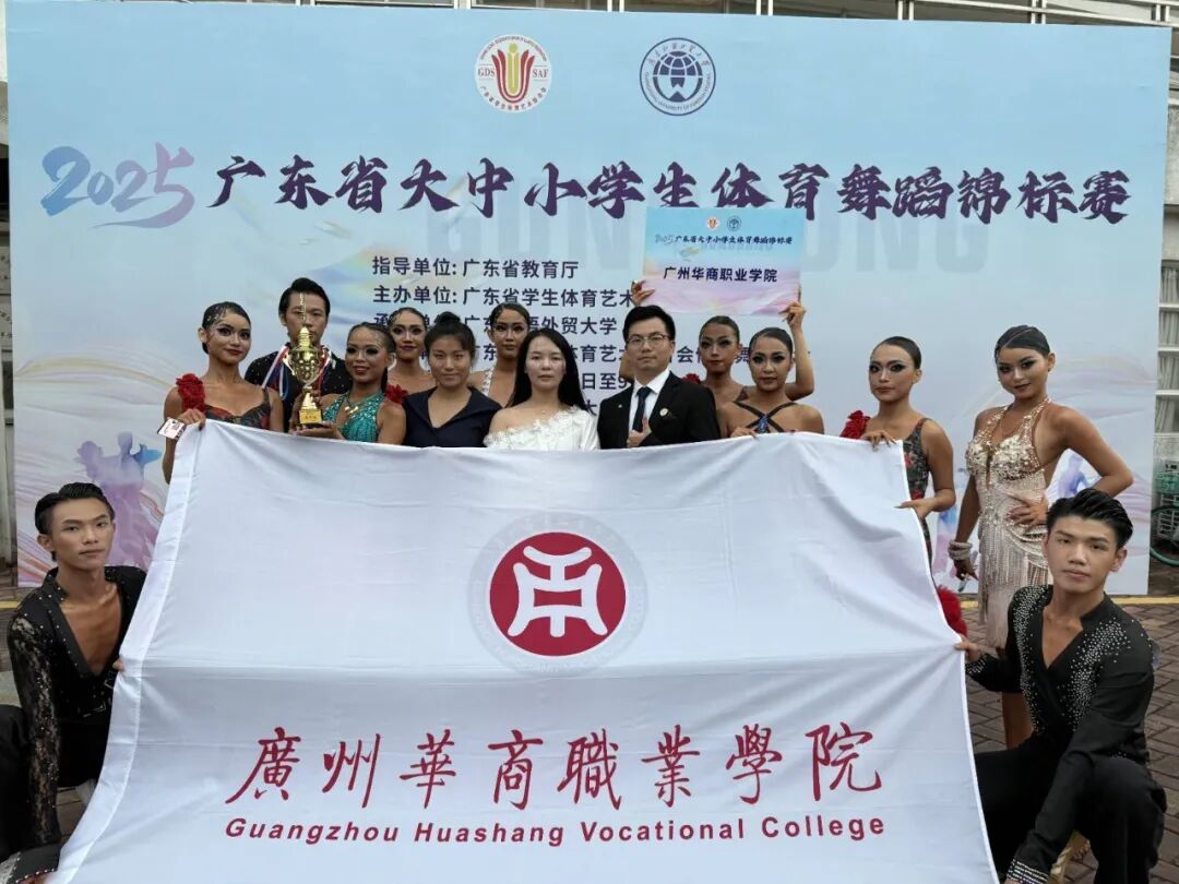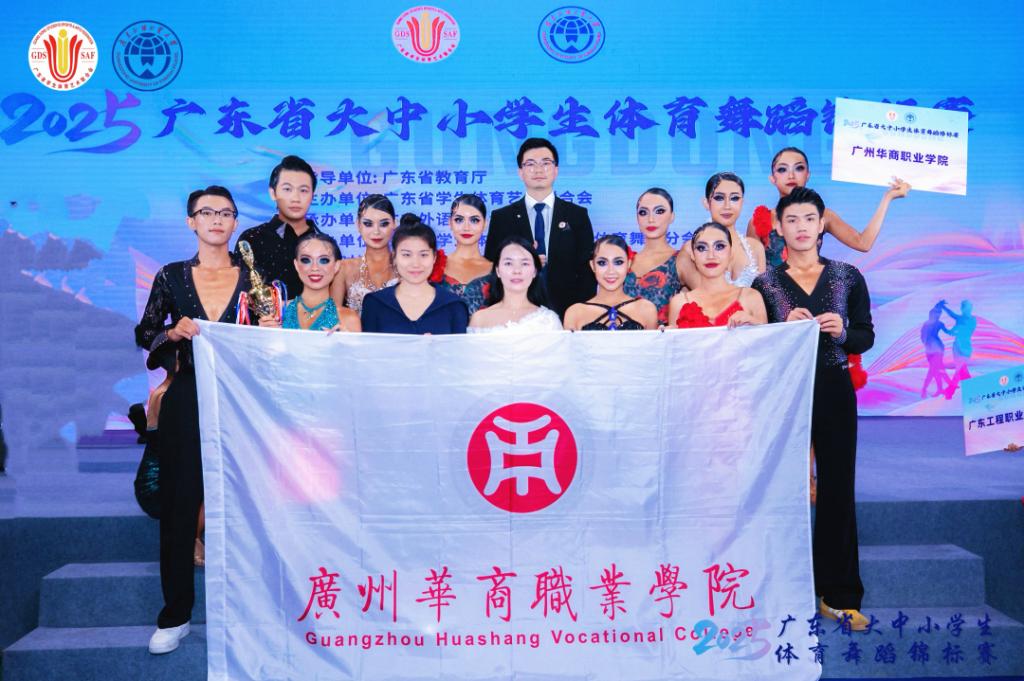 经过紧张激烈的比拼,广州华商职业学院选派的11名体育舞蹈健儿不负众望,凭借出色的发挥和稳定的表现,取得了优异的战绩,获得丙组团体总分一等奖。