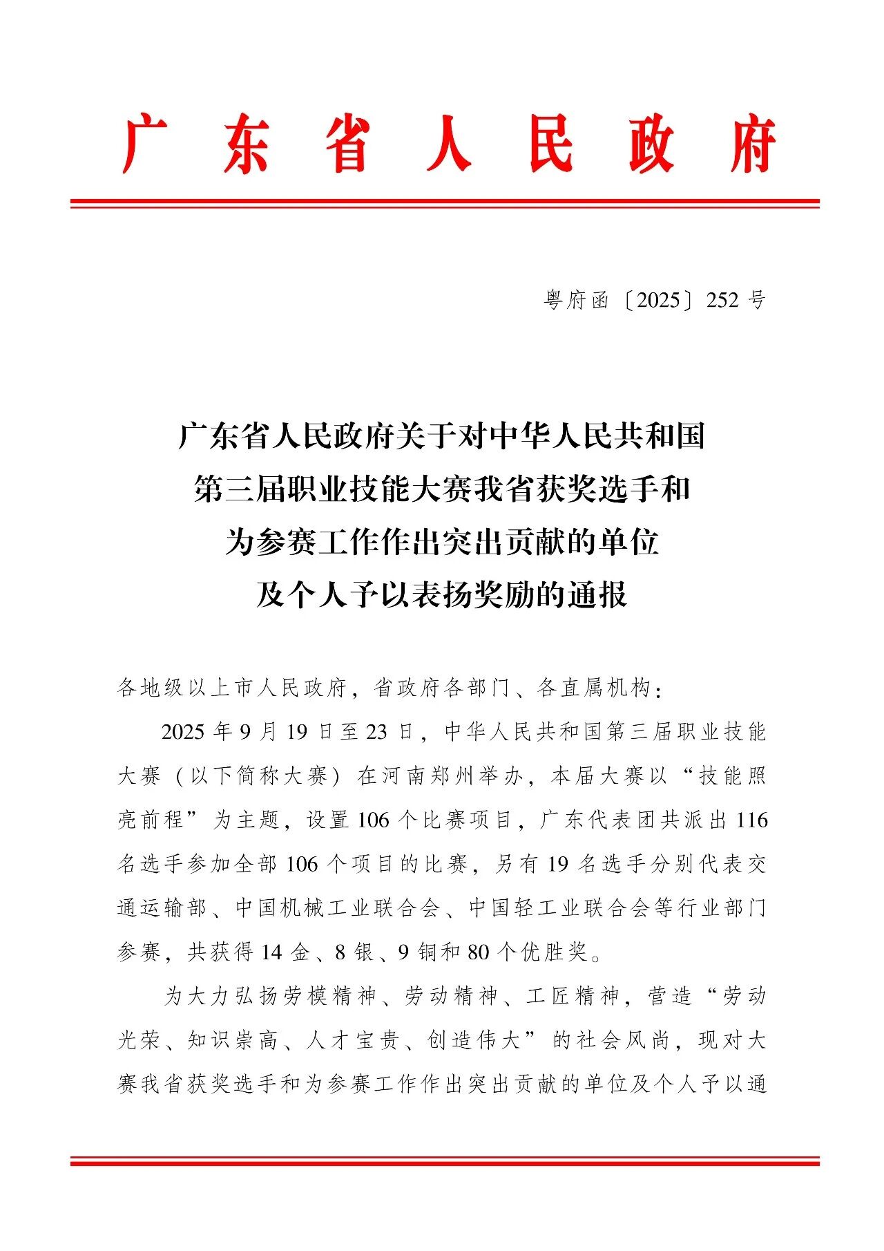 第三届职业技能大赛我省获奖选手和
