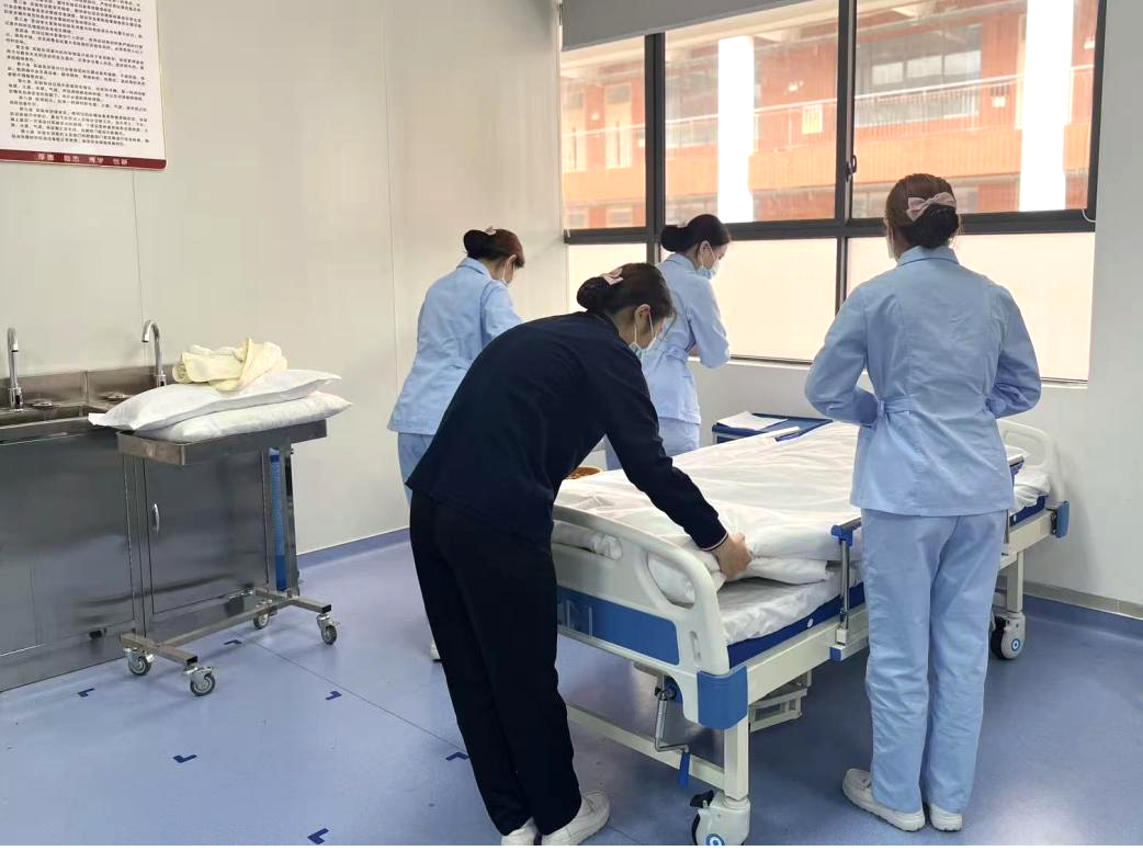 备赛过程中,参赛同学们以实训室为战场,分秒必争,全力以赴。她们兼顾护理技能大赛与老年护理与保健大赛的双重挑战,始终坚守医者初心,一方面精研护理专业核心技能,另一方面怀揣“守护夕阳、呵护长者”的温情使命,紧扣两大技能标准,反复打磨每一个操作流程,精准把控每一处细节规范,不断优化服务质量。她们用严谨的态度和辛勤的汗水,深刻践行了对护理事业的赤诚热爱与责任担当。