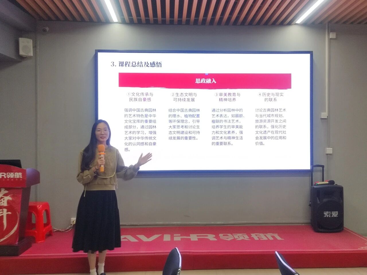 而印证有时就藏在不经意的细节里。一位目前正在实习的学生,到上海豫园旅游特意给她发来一张太湖石的照片,留言说:“老师,您讲太湖石‘皱、漏、瘦、透’的特性,我眼前这块就是活教材,以后上课可以用咱们自己拍的图了。”学生的反馈让周期意识到,课程知识已经内化为学生的审美素养,而这份主动分享,更是一种职业使命感的萌芽,她觉得这比任何直接的赞美都更有分量。