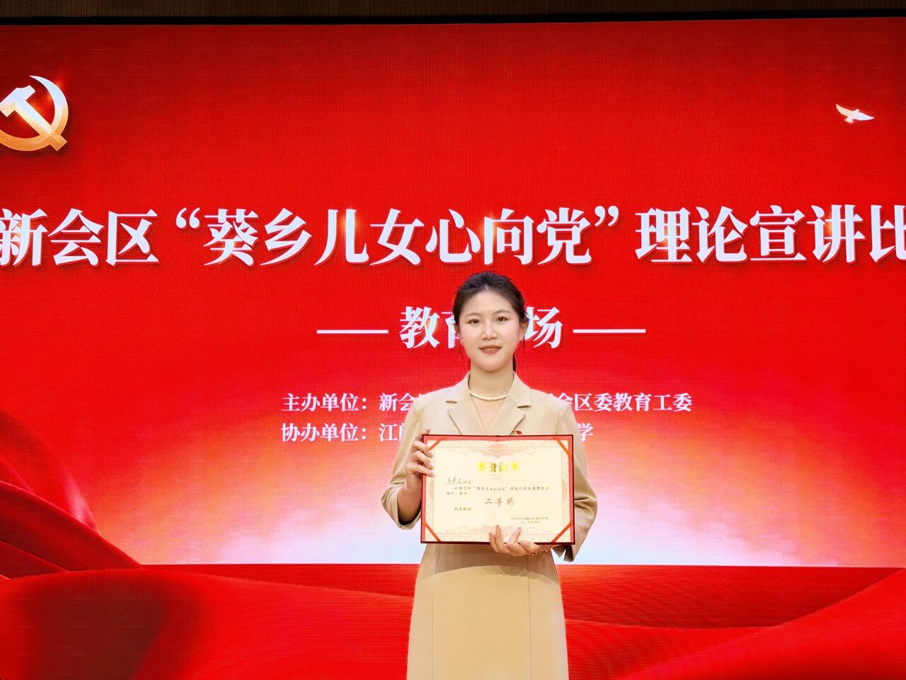 4月3日,江门市新会区“葵乡儿女心向党”理论宣讲比赛教育专场佳音传来。广州华商职业学院马克思主义学院教师马景文以《一句“听懂了”,便是我最好的思政课》的精彩宣讲,荣获二等奖。