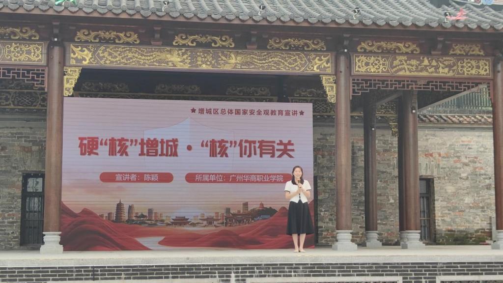 近日,2026年增城区总体国家安全观教育宣讲评选活动圆满落幕。本次活动由增城区委国安办、区委宣传部、区教育局联合主办,汇聚区内16所高校优秀教师同台竞技。广州华商职业学院马克思主义学院陈颖老师凭借扎实的理论功底、清晰的逻辑表达与生动的现场宣讲,凭借课题《硬“核”增城・“核”你有关》脱颖而出,荣获本次活动一等奖。