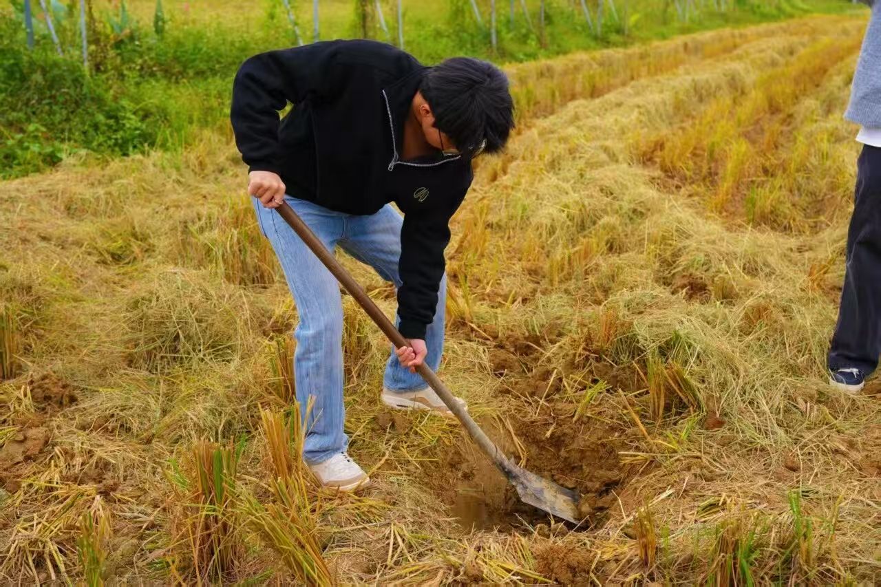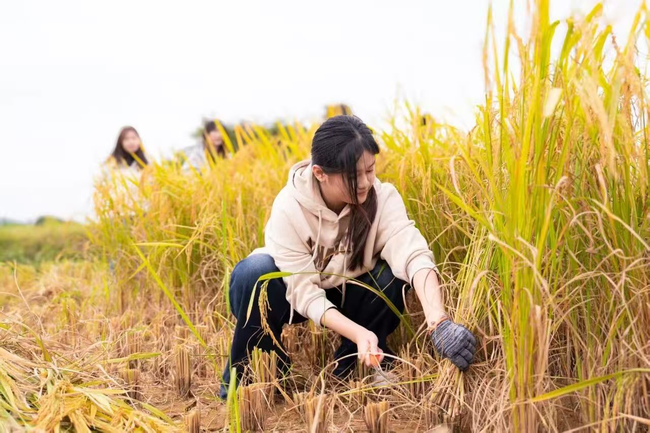 在收割稻谷活动中,学生们分组竞赛,按照传统收割技艺比拼速度与质量。一位学生感慨:“原来一碗米饭的背后,是如此繁复的劳作与科技支撑。”