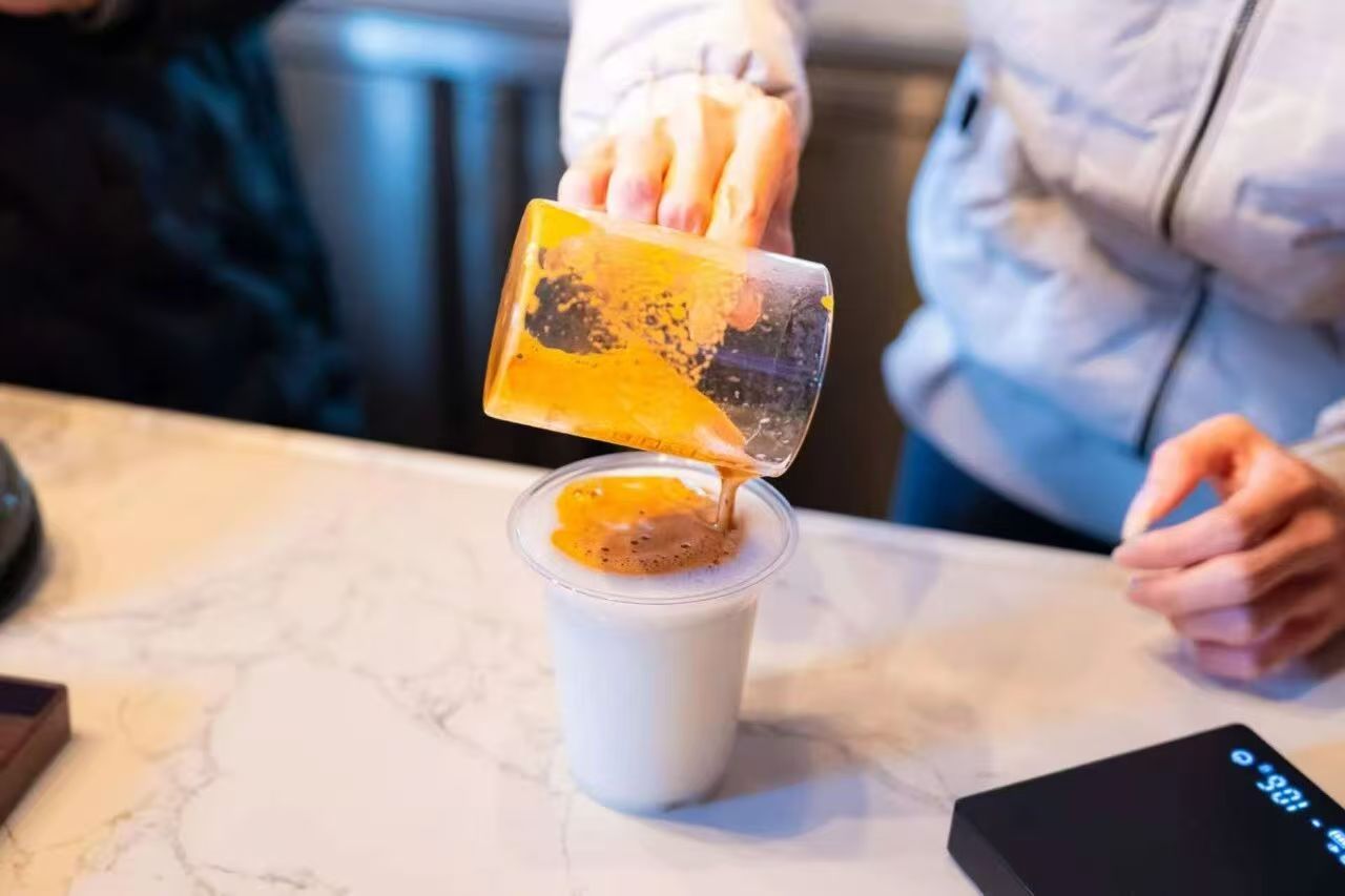 在增城丝苗米生产基地,师生们亲身体验了“米咖”制作。将传统丝苗米与现代咖啡融合的创新饮品,不仅展现了农业产业的跨界活力,更激发了同学们对农产品深加工的思考。