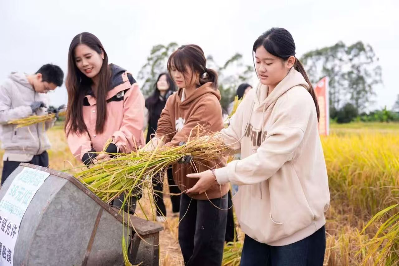 11月19日,广州华商职业学院通识与教育学院教师、课堂革命试点班40余名学生一同走进增城区省级农业丝苗米产业园,开展劳动教育户外研学,沉浸式体验农耕文化。