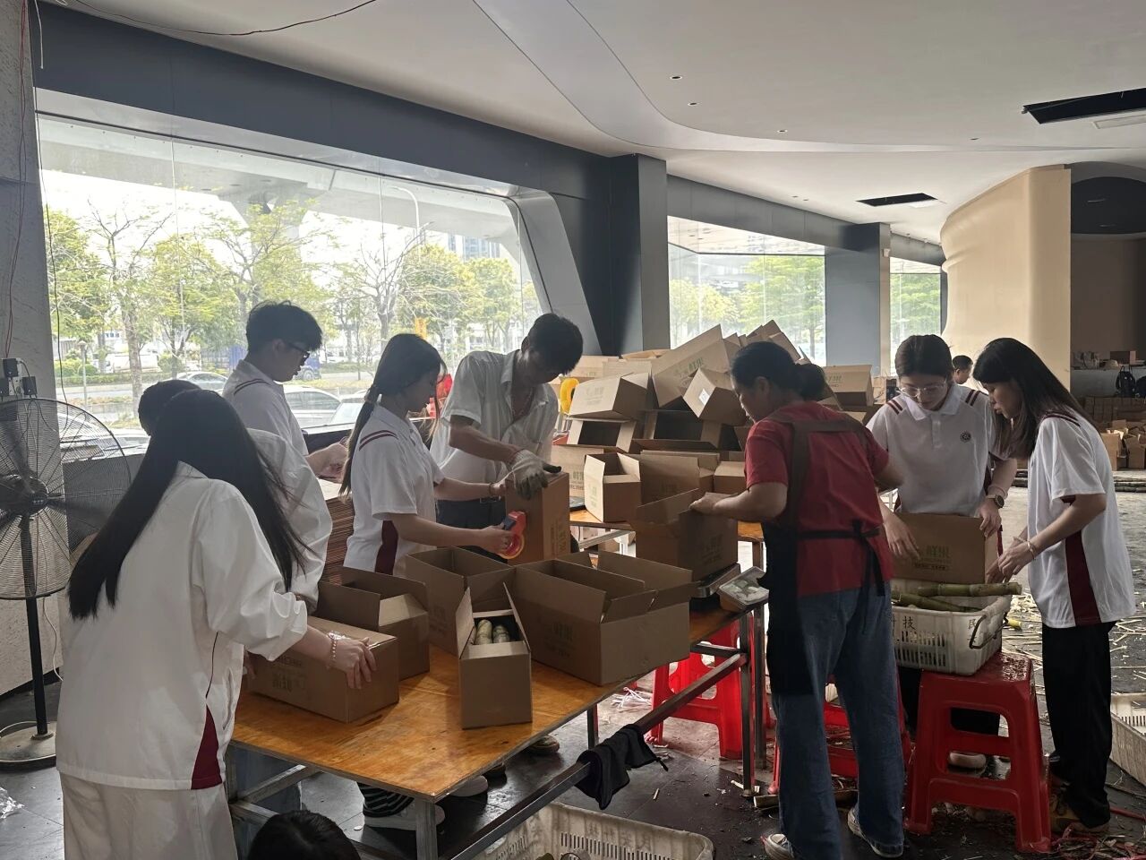 与此同时,校团委志愿者们积极响应新会区融媒体中心“今日新会”栏目组号召,在栏目组牵线下,联动全网粉丝超500万的自媒体达人“大表哥 995”,在小红书发起新会黄皮果蔗自驾助农活动,吸引众多市民专程前往参与。志愿者们主动为来访群众宣传讲解甘蔗特色、拍摄助农短视频、协助打包搬运甘蔗,以暖心志愿服务为本地甘蔗拓宽宣传与销售路径,以青春志愿力量助力农产品出圈。
