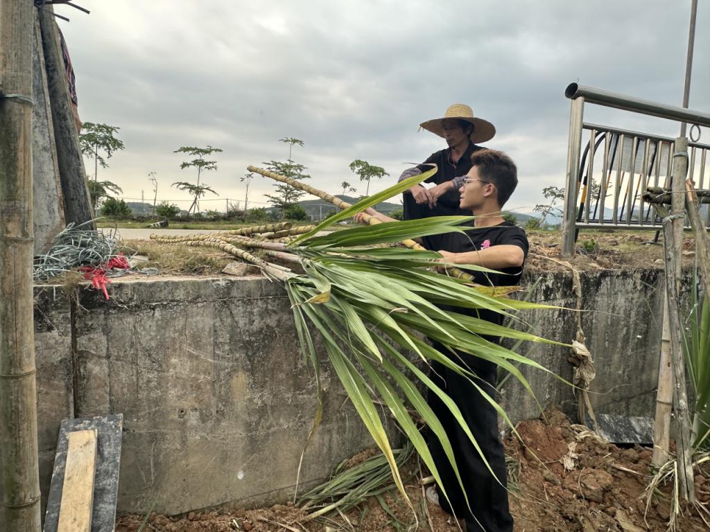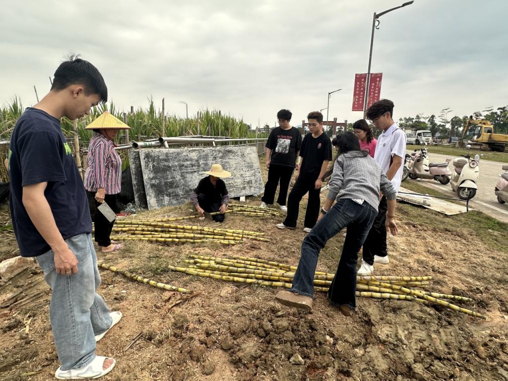 同日,人工智能技术学院“同心燃梦、数字赋能”乡村振兴促进队奔赴增城能记家庭农场。面对甘蔗滞销困境,学子们扎根蔗田现场砍蔗、实景展示,用真诚讲解传递蔗农心声,以“以购代捐、以买代帮”的实际行动,为滞销甘蔗打通销路,让田间清甜直达千家万户。