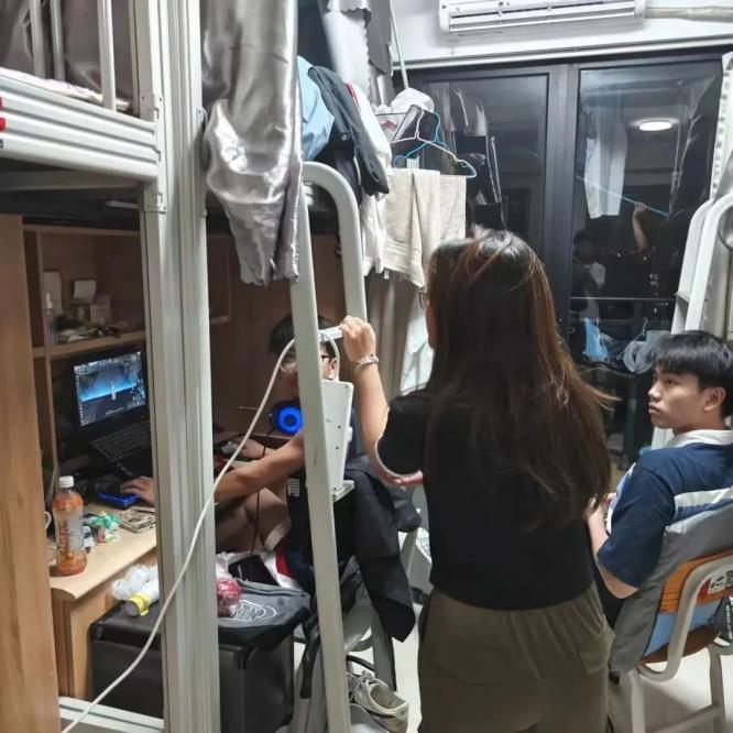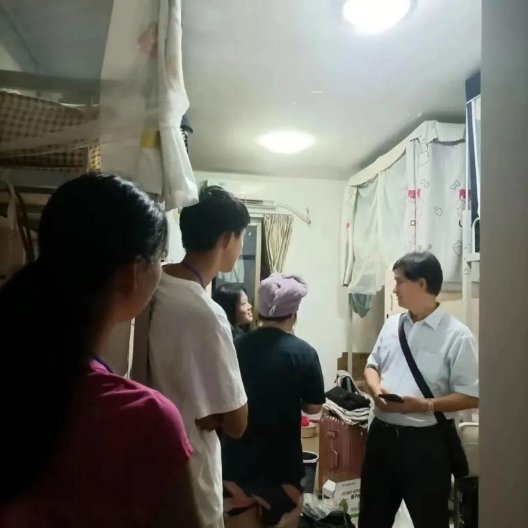 在查寝过程中,辅导员与学生们亲切交流,了解学生的回校情况,讲述了两点开学相关事宜: