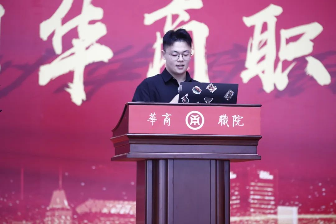 学生代表郑凯帆发言,他分享了自己的大学学习规划,提醒大一新同学要尽早明确自己的学习目标,不忘初心,坚定理想信念,积极参加社会实践,全面锻炼自己,在学习和实践两方面展现当代大学生的精神风貌。