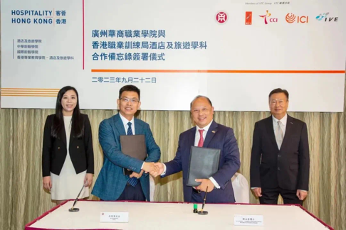 2023年9月22日,广州华商职业学院与香港职业训练局(VTC)酒店及旅游学科(酒店及旅游学院、中华厨艺学院、国际厨艺学院、香港专业教育学院-酒店及旅游学科)合作备忘录签署仪式顺利举行。出席本次仪式的领导嘉宾有华商教育集团副董事长兼青促会主席、广州华商职业学院副校长廖伊曼、香港职业训练局副执行董事余国柱、广州华商职业学院副校长余家军、香港职业训练局副总裁/学术总监刘永棠、四川城市职业学院院长王世伦、广州华商职业学院酒店管理学院院长林红梅、香港职业训练局项目总监陆志伟、港澳台事务办公室主任钱芳、华商教育集团副董事长助理兼青促会常务副秘书长熊子珂、香港职业训练局总教练刘志坚。
