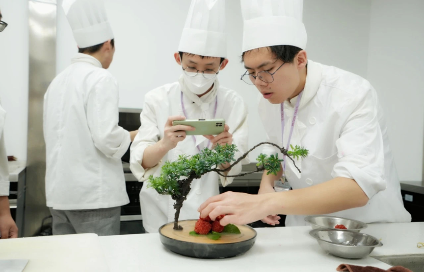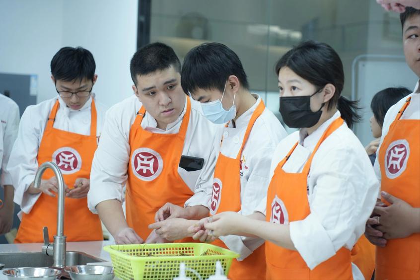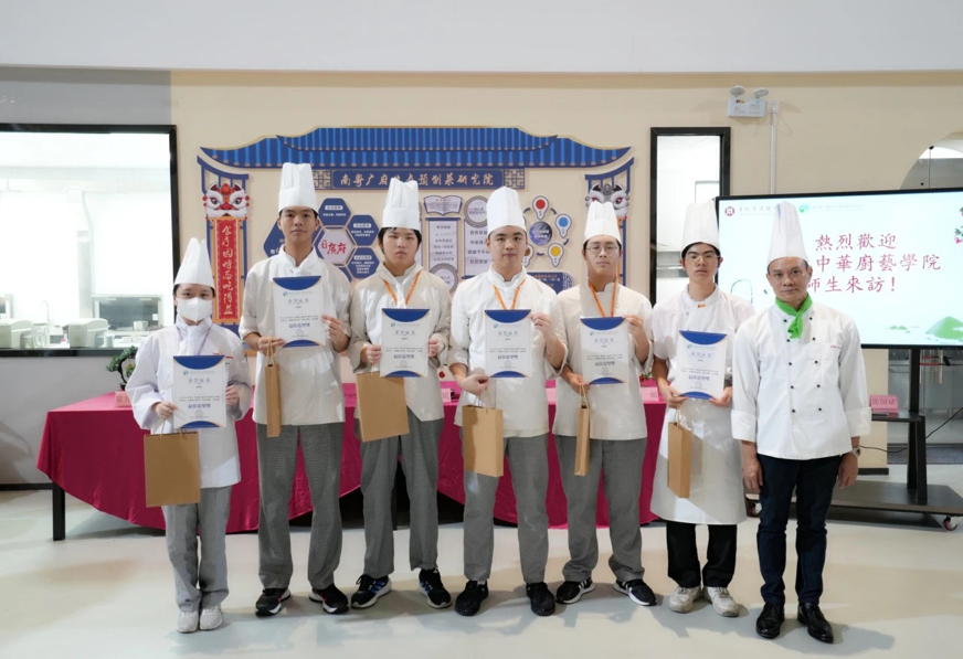 2023年8月1日与8月8日,由粤港澳大湾区青年职业发展促进会(以下简称“青促会”)协助开展的「2023粤港澳大湾区青年粤菜交流活动」于广州华商职业学院顺利举行。本次活动目的在于积极弘扬粤菜传统文化,大力推广粤菜培训以及加强粤港澳大湾区的青少年交流,助力“粤菜师傅”人才培养,为粤港澳大湾区打造烹饪技能人才高地。本次活动共有52名来自香港中华厨艺学院的学生和广州华商职业学院酒店管理学院烹饪工艺与营养专业的学生一同参加,两地同学共同组队制作增城特色菜肴——荔枝芝士虾球,并由活动嘉宾就菜肴进行了点评及为获奖队伍颁发证书和奖品。香港中华厨艺学院总教导员刘志坚、项目主任郑少彬、广州华商职业学院酒店管理学院院长林红梅、青促会常务副秘书长熊子珂等师生代表一行出席了本次活动。