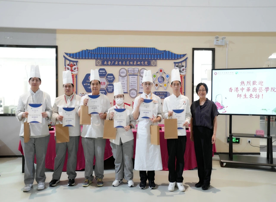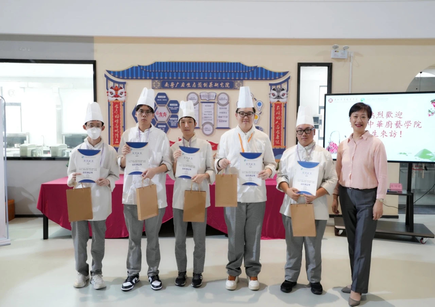 香港中华厨艺学院的师生代表分别参观了校内实训基地,如中药房、模拟医院、数字金融财务实训室、电商直播实训室、数字设计实训室,了解内地职业教育的发展情况。