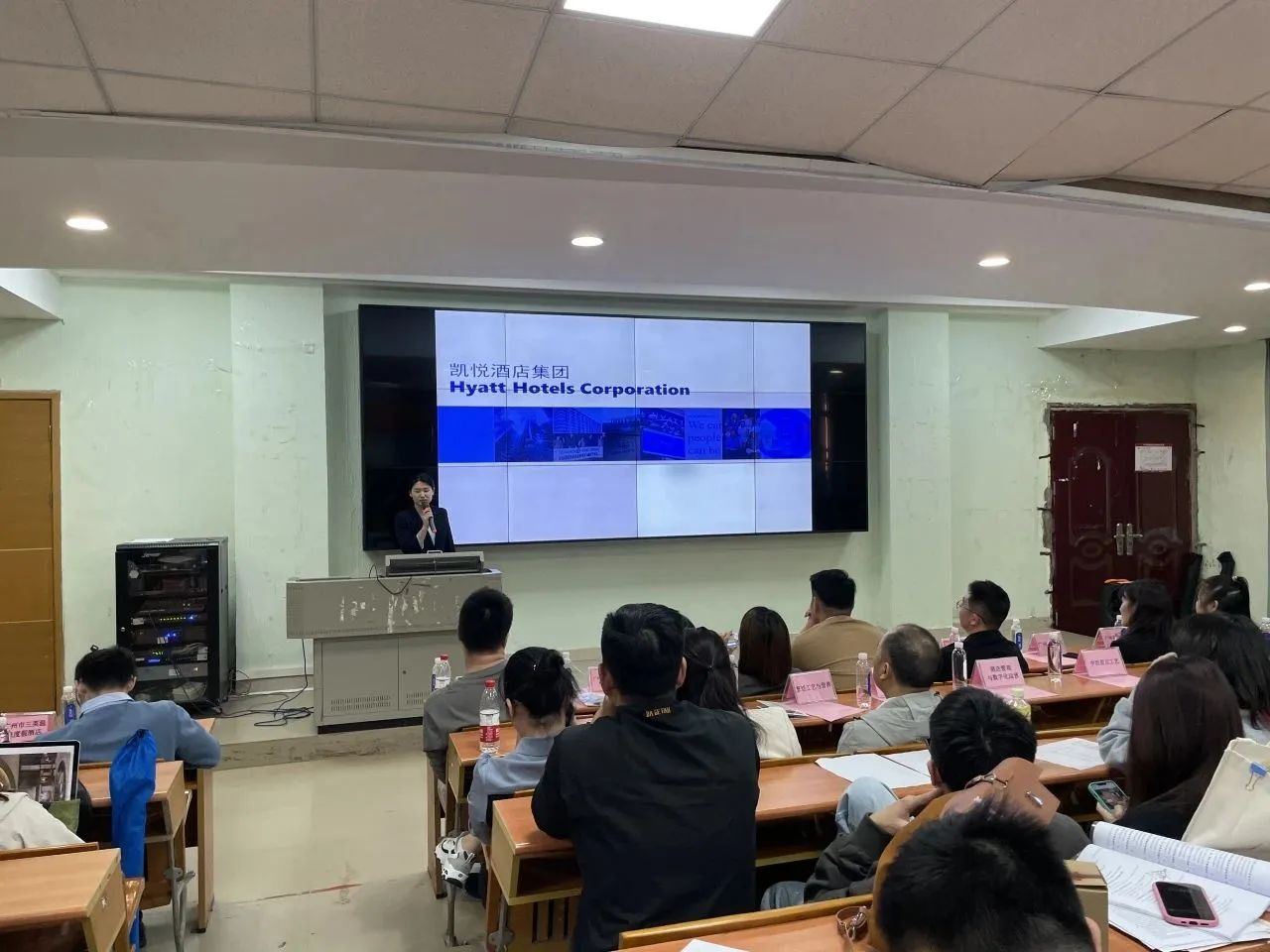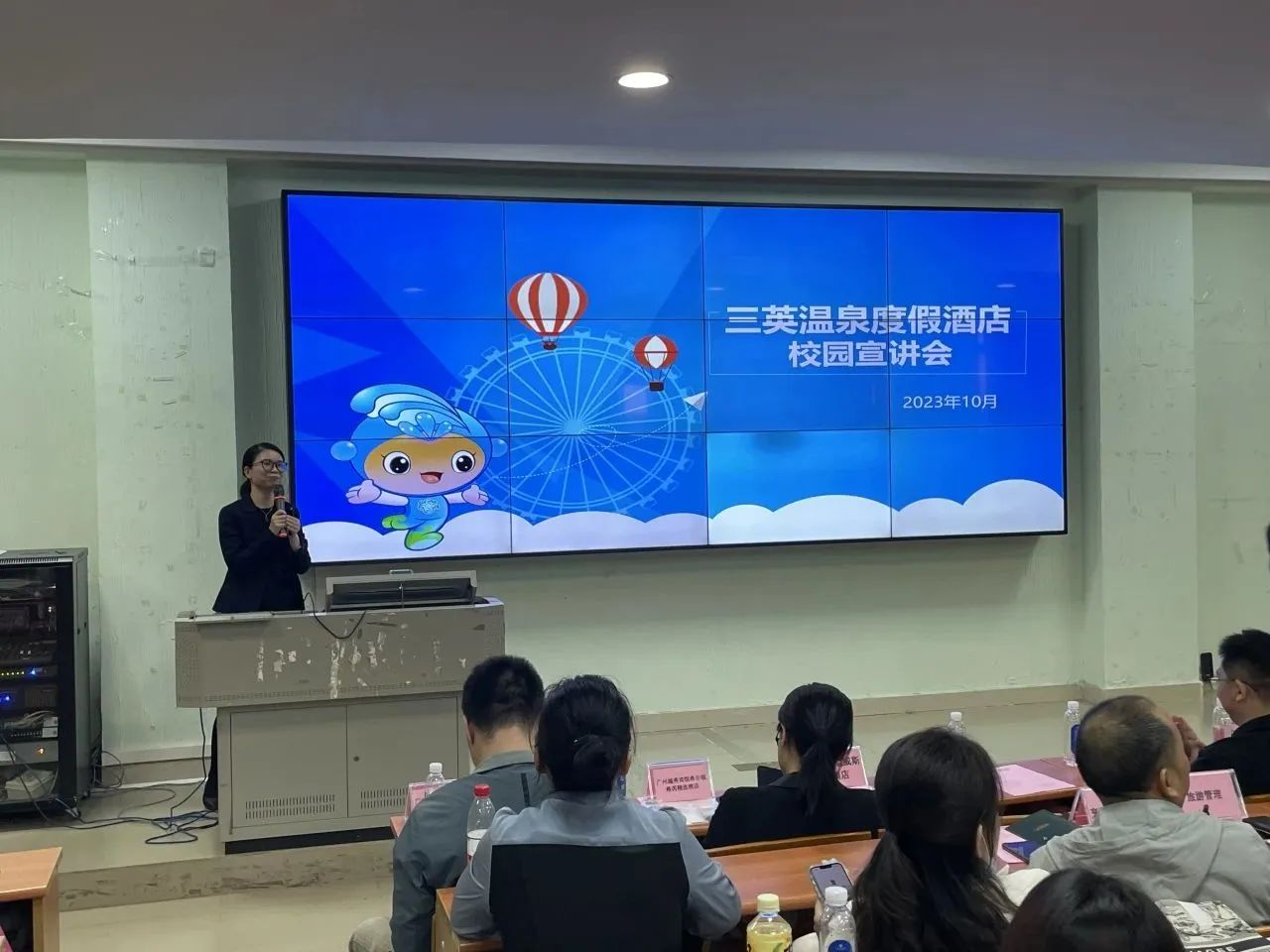 宣讲会上,谢锦权代表酒店管理学院对各位企业来宾参加企业招聘宣讲会表示欢迎与感谢。谢锦权表示,校院各级领导十分重视毕业生的岗位实习与就业工作,通过积极访企拓岗不断加强校企合作,为同学们的实习与就业开拓更多优质的资源与机会。会上谢书记向毕业生们提出三点希望:高度重视、珍惜与把握机会, 自信自强、积极展示求职能力与风采,严谨认真、不断提高职业技能与职业素养。