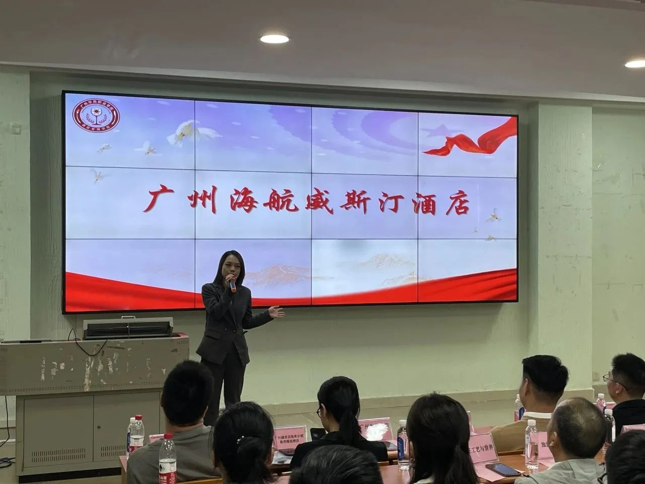 莅临我校参加企业招聘宣讲会的12家名优企业分别为:广州市大鸽饭餐饮投资有限公司、广州越秀宾馆希尔顿格芮精选酒店、广州海航威斯汀酒店、广州增城凯悦酒店、广州W酒店、广州东方宾馆、金茂深圳JW万豪酒店、广州市四季名菜餐饮管理有限公司、广州东圃合景福朋喜来登酒店、广州市食尚国味饮食管理有限公司、珠海长隆投资发展有限公司、广州市三英温泉度假酒店。
