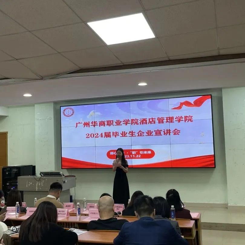 为促进毕业生高质量就业,加强校企合作交流,11月22日下午,我校酒店管理学院在博C101举行了酒店管理学院2024届毕业生企业宣讲会,12家名优企业到校参加企业招聘宣讲会,为酒管学子送职送岗。广州华商职业学院招生就业处副处长陈锦辉、酒店管理学院党支部书记谢锦权、相关专业负责人、辅导员以及酒店管理学院全体2024届毕业生参加了活动。