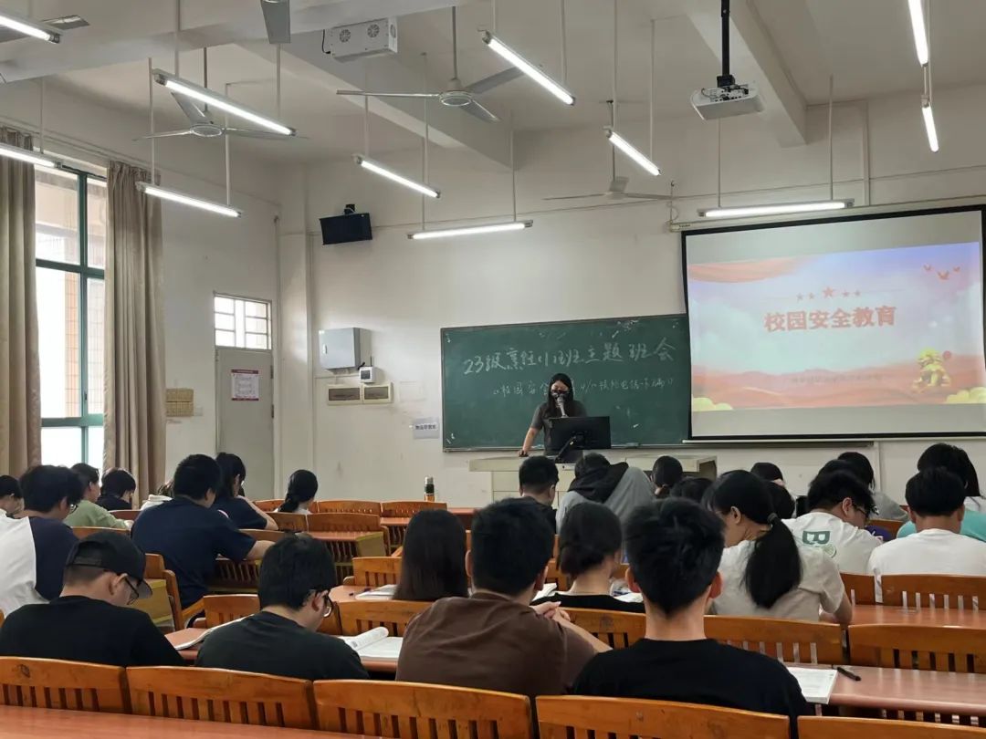 为全面落实安全教育与学风建设,进一步提升学生安全意识,加强校园管理。2023年10月31日,酒店管理学院在创教楼教室开展了以“校园安全教育”为主题的班会,班会由各班的学委主持,参加人员为2023级酒店管理学院全体同学。