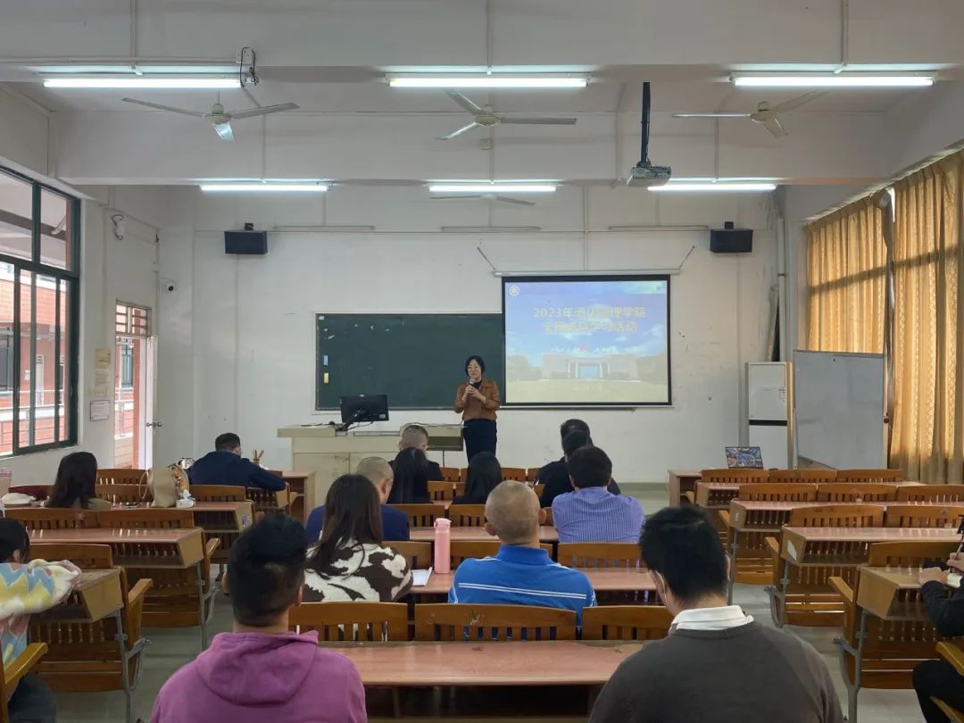 为深入学习贯彻习近平新时代中国特色社会主义思想和党的二十大精神,落实“推进教育数字化,建设全民终身学习的学习型社会、学习型大国”重要部署,根据《广州华商职业学院关于开展 2023 年度全民终身学习活动周系列活动的通知》要求,酒店管理学院于11月29日下午组织全体教师在创教402集体学习了《中华人民共和国爱国主义教育法》以及“教育家精神”。