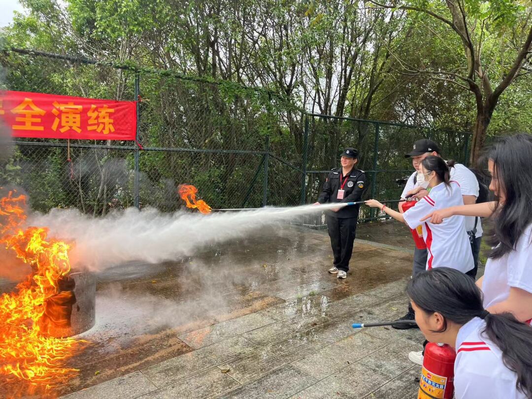 随后学校后卫保勤处人员与师生将消防演练地点转移到创教楼前的空地开展学生消防技能演练,为学生讲解展示消防工具的使用方法,教会同学们使用消防器材,尤其是灭火器的使用方法以及在灭火时的注意事项,当同学们在面对初起的火灾时,必须遵循先控制后消灭,救人第一,先重点后一般的原则等消防知识。