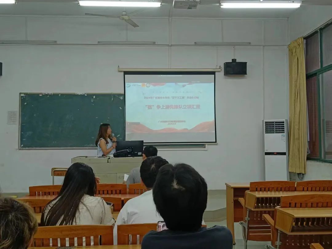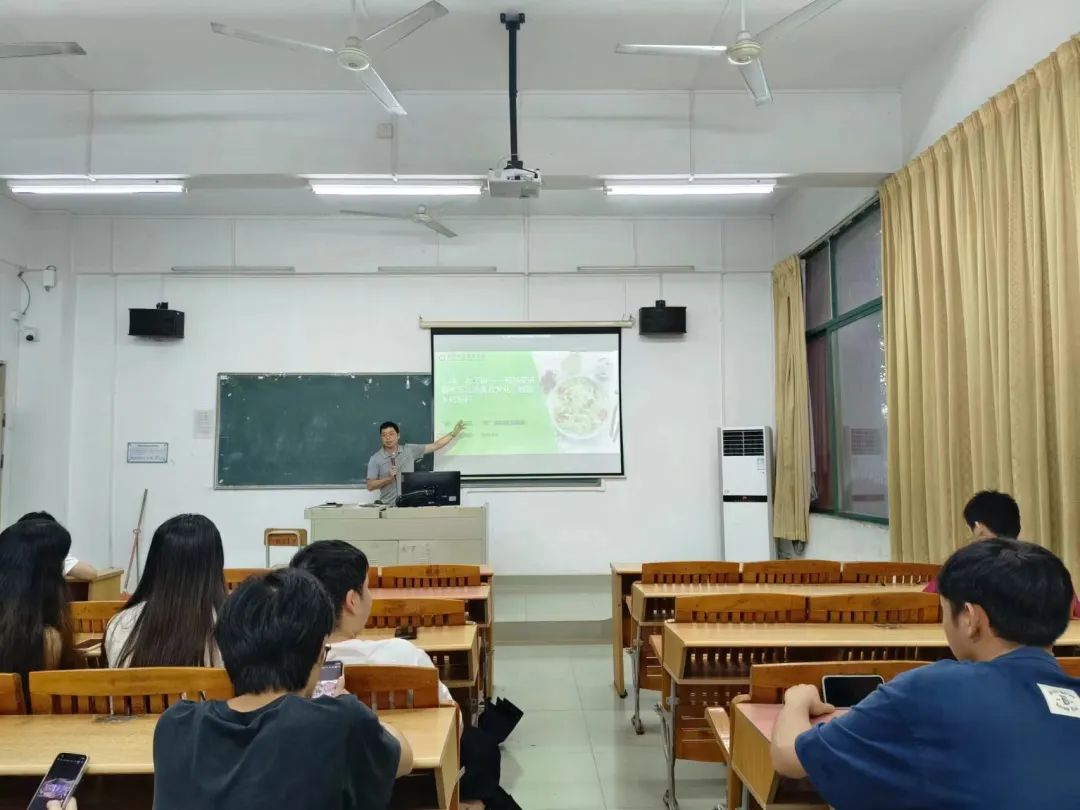 接着,谢锦权书记作为实践队指导老师之一讲解了"味"力无限——预制菜研制传承正果美食文化,赋能乡村振兴”项目。该项目密切结合地方需求,以粤菜师傅预制菜研制为核心,充分结合我们酒店管理学院相关专业特色与学科优势,计划开展相关社会实践志愿服务活动,旨在弘扬传承正果乡村美食文化,为乡村振兴赋能助力。