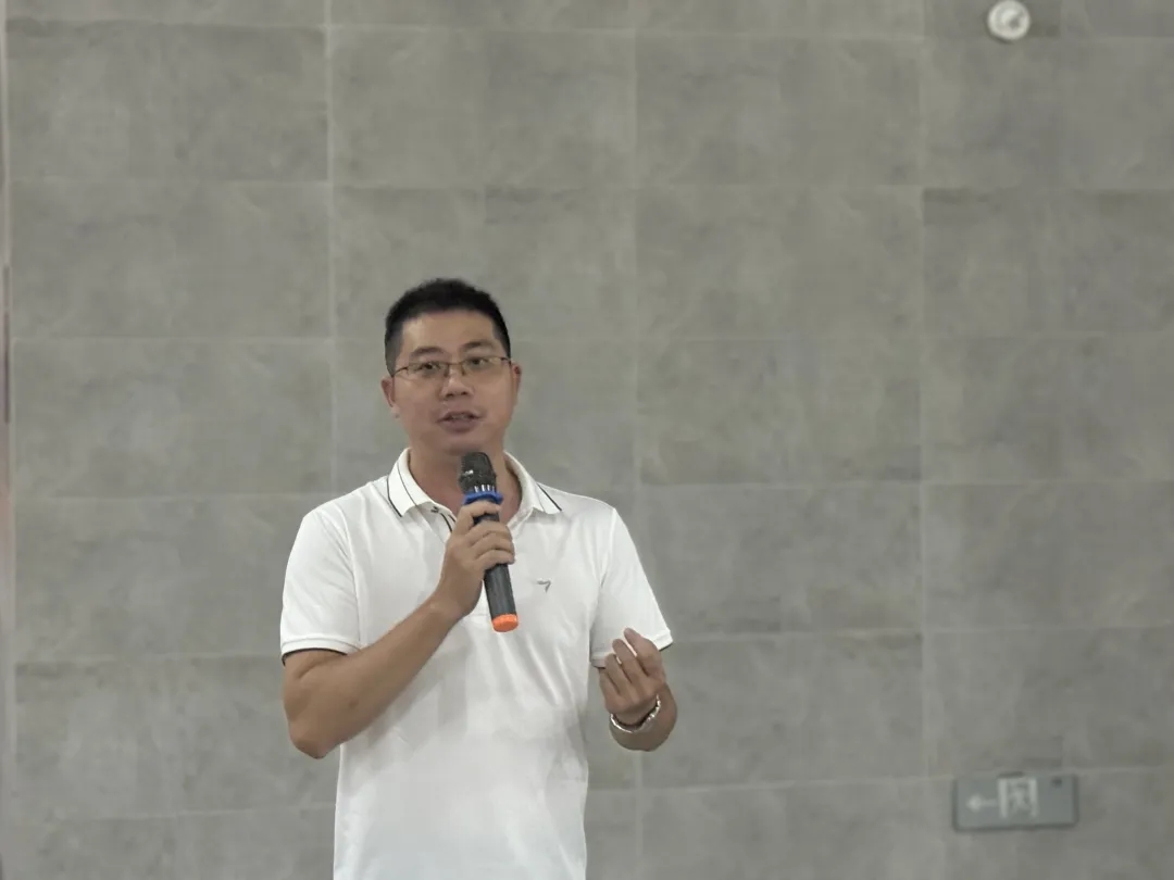 酒店管理学院副院长、党支部副书记谢锦权老师热情地鼓励新生们积极参与即将举行的新生心理素质拓展活动,以促进个人成长和团队凝聚力。