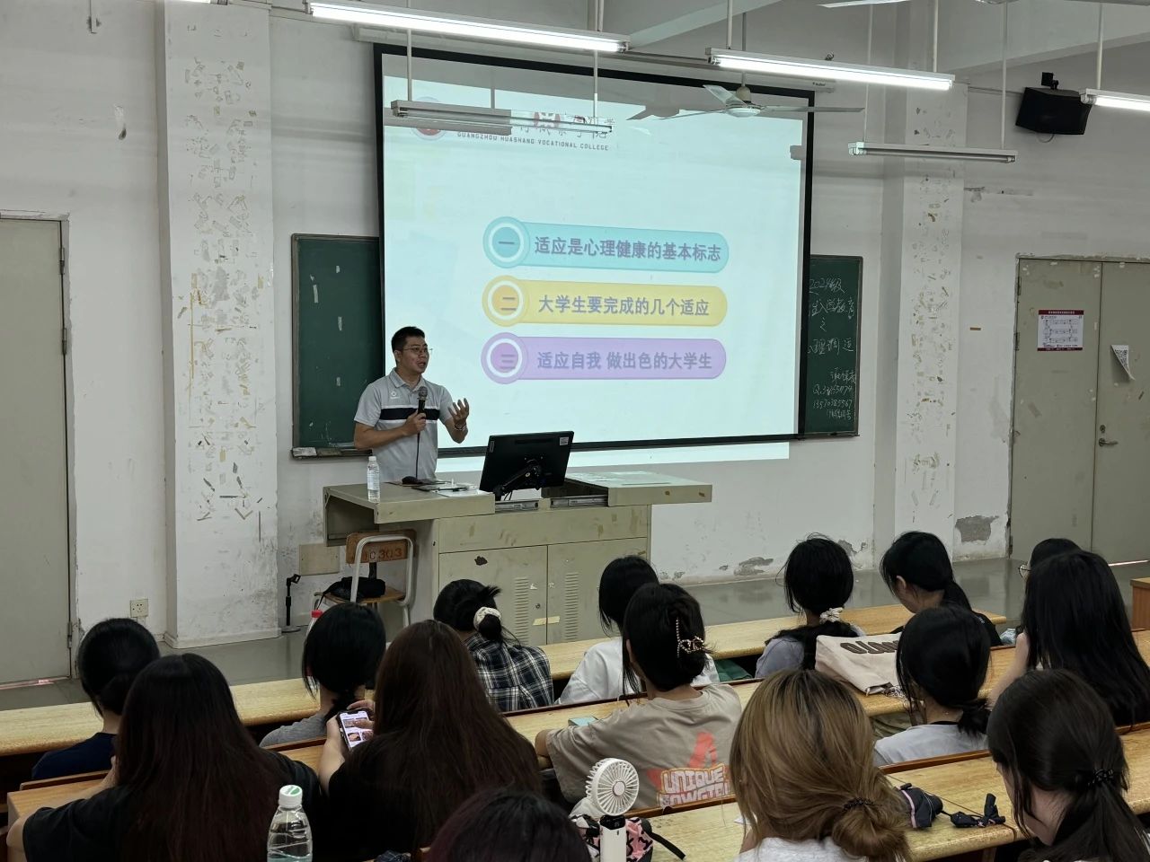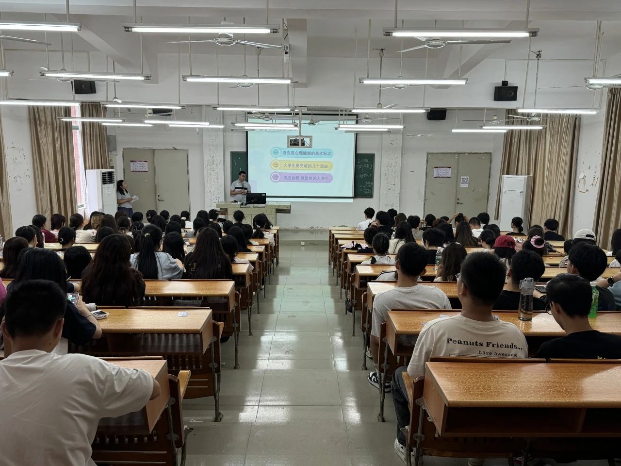 为了帮助2024级新生更好地适应大学生活,深入了解自我,酒店管理学院于9月6日上午在博学楼C201、B301、B401举办了一场主题为“悦纳自己,展现真实自我”的心理健康教育课程。本次活动学院副院长谢锦权、新生辅导员黄向荣老师、院团委副书记陈海宁老师作为主讲,24级全体新生参加,共同探索心理健康的奥秘。