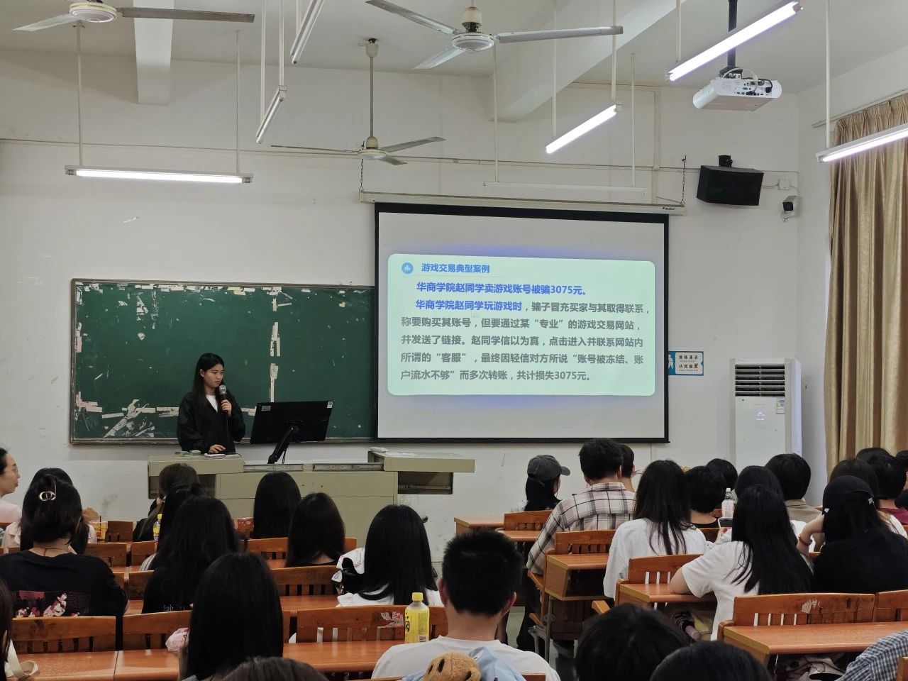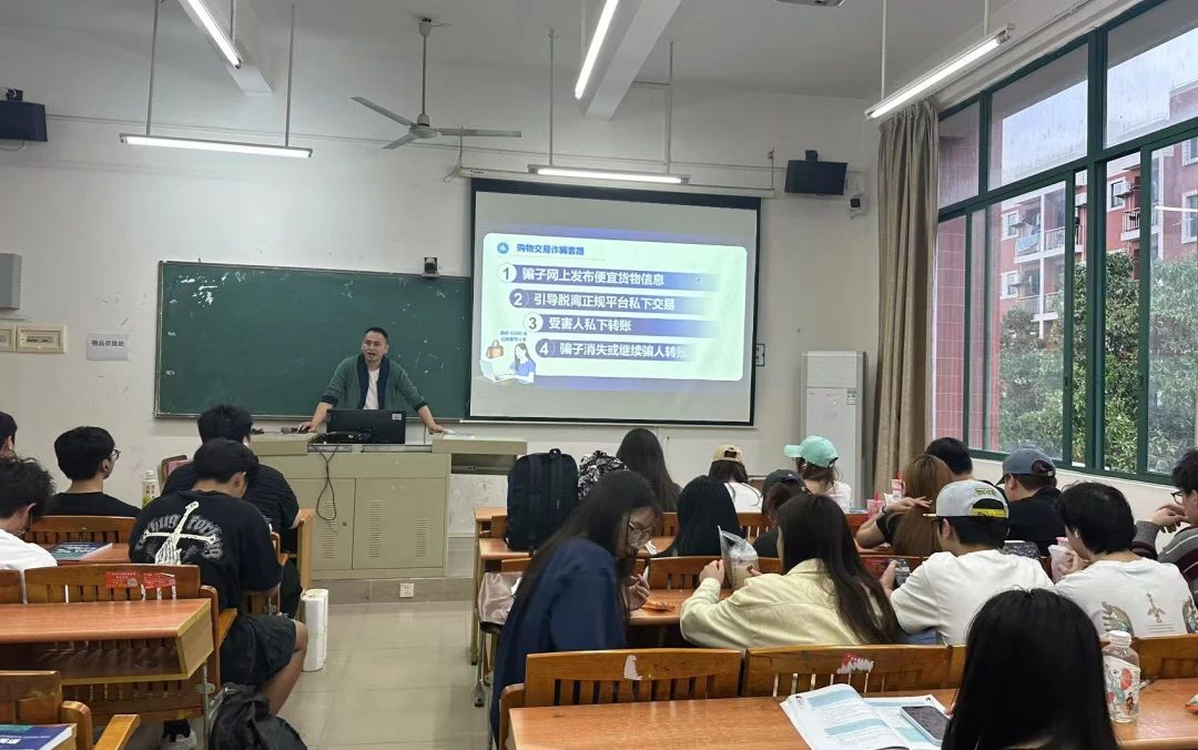班会伊始,班主任结合近期高校高发的“刷单返利”“虚假购物”“冒充客服”等典型诈骗案例,通过视频解析和展示《高校常见的5种诈骗手法》,揭露了诈骗分子的常用话术与作案手段。一组组触目惊心的数据、一个个真实受害者的经历,让同学们深刻认识到诈骗的危害性,也让同学们深受触动,意识到“反诈无小事,防患于未然”。